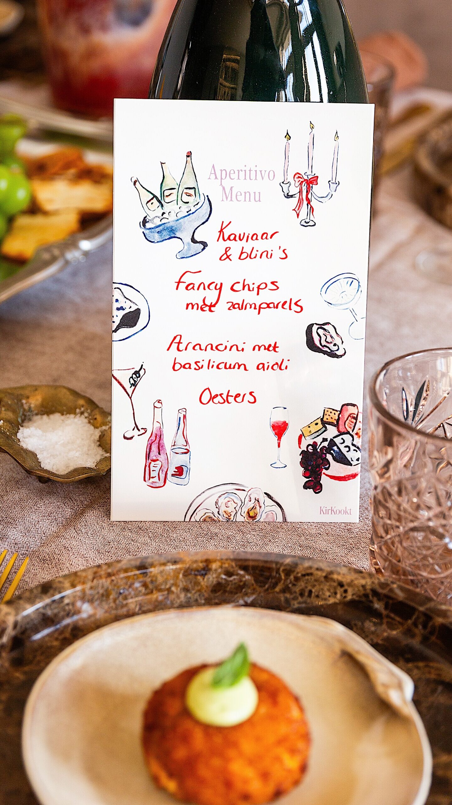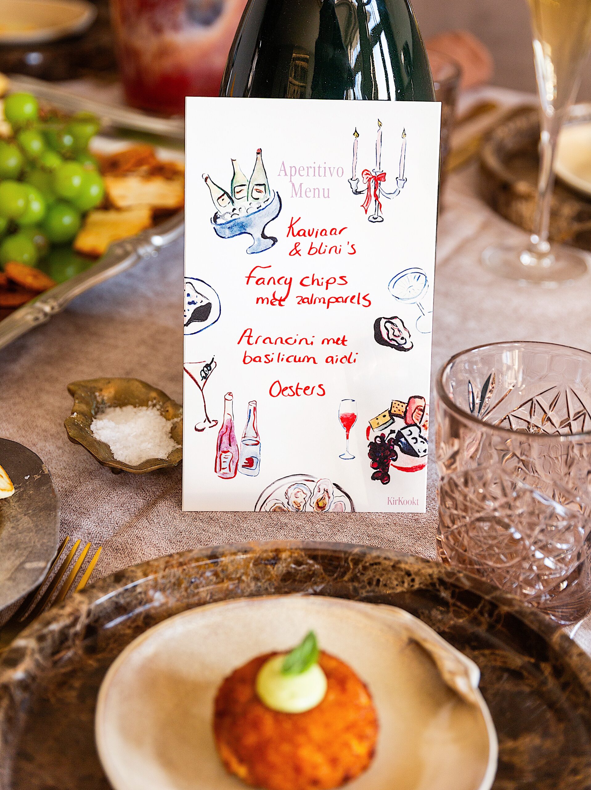 Het Aperitivo menukaartje is een tastbare herinnering aan een mooie avond en perfect om er een persoonlijke boodschap op te schrijven. Ik beloof je dat het menukaartje als souvenir mee naar huis gaat en vervolgens op de koelkast wordt geplakt of zelfs ingelijst!