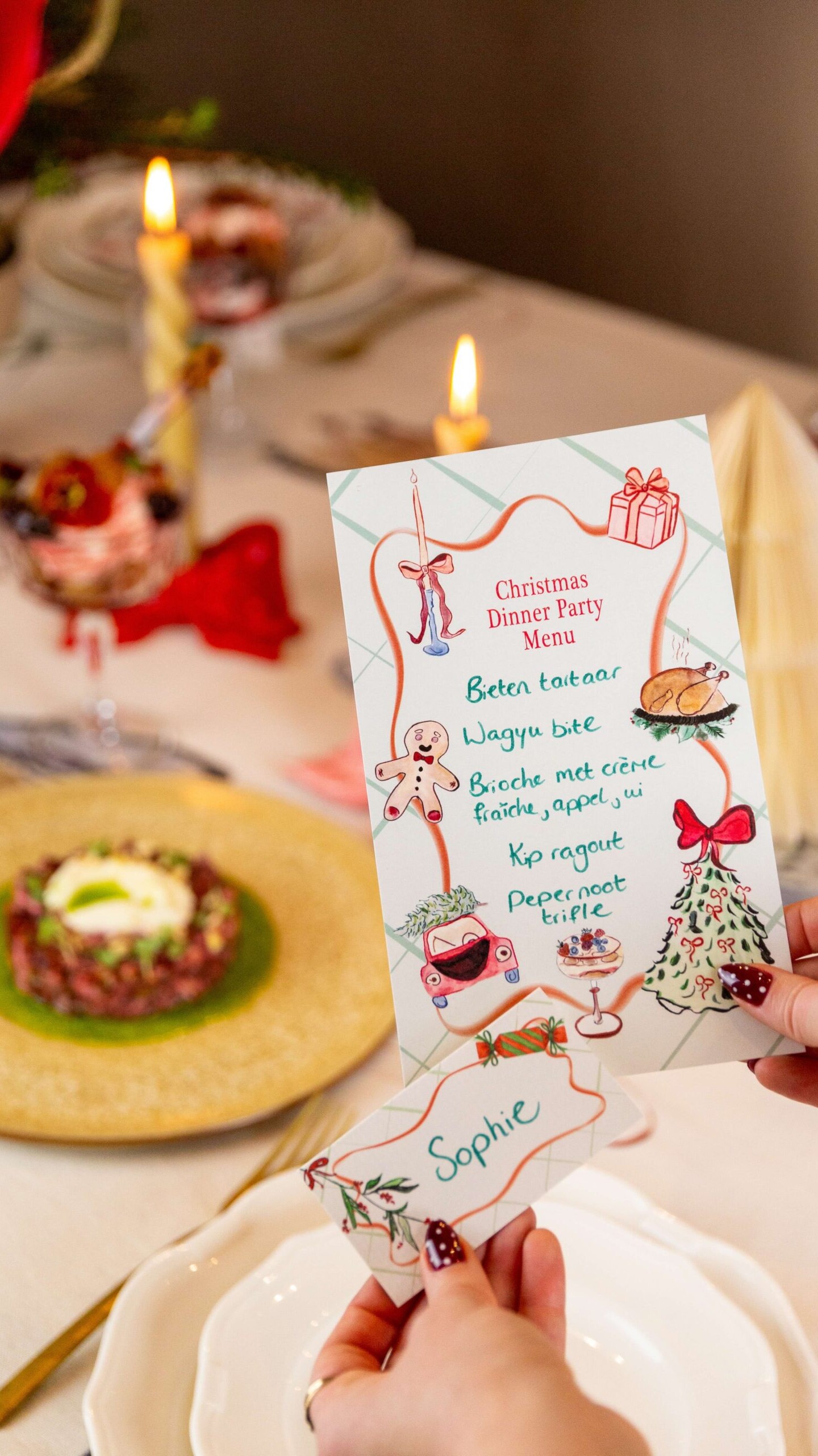 De kaartjes maken jouw avond niet alleen mooier, maar zijn ook een prachtige, tastbare herinnering aan een heerlijke kerst. Perfect om een persoonlijke boodschap of de naam van je gasten op te schrijven. Wedden dat ze ’m mee naar huis nemen als souvenir: op de koelkast of zelfs ingelijst?