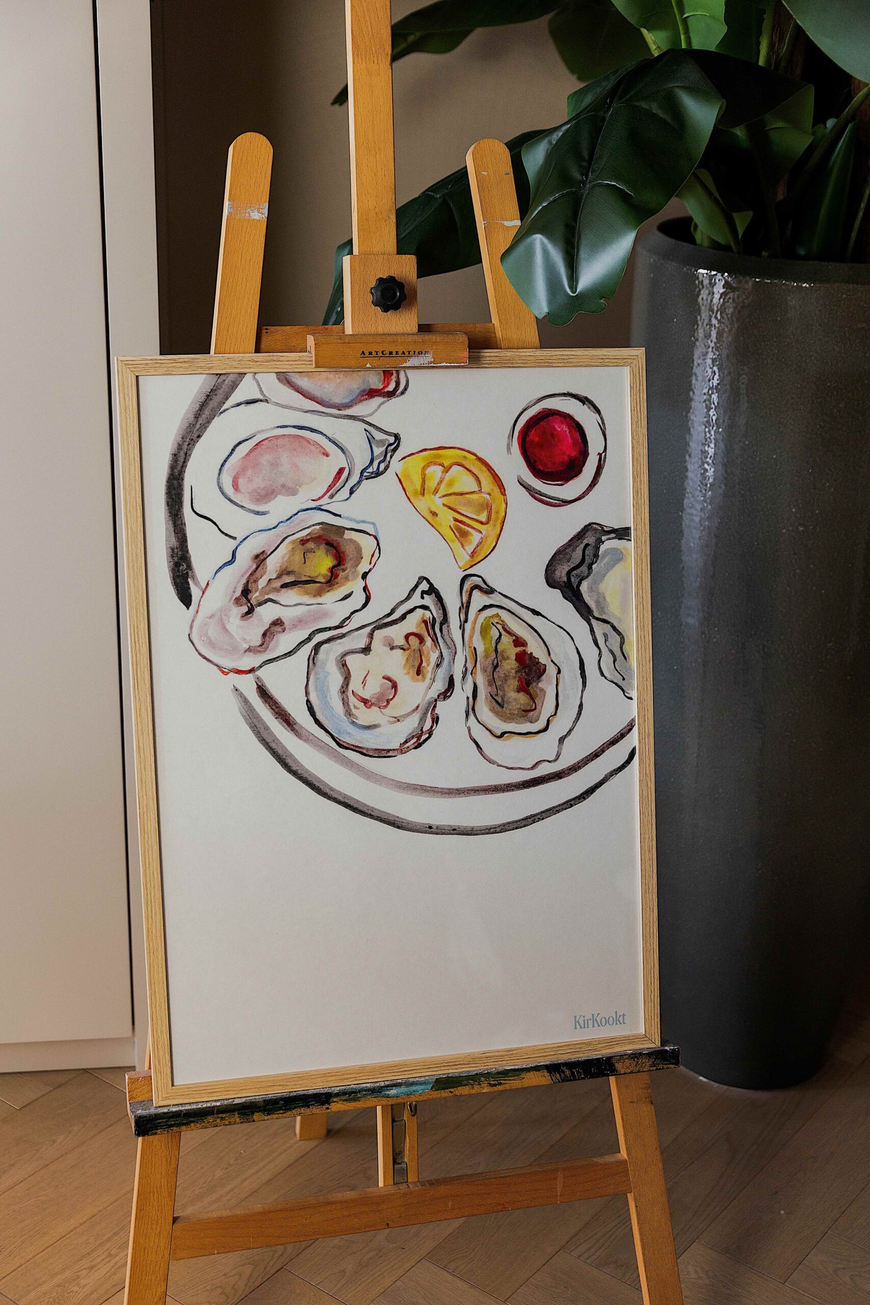Jouw favoriete foodie illustratie, nu voor altijd aan de muur! Deze handgeschilderde Oester poster is uitgevoerd in rijke roodtinten met speelse accenten van blauw en zwart. Een echte blikvanger in je interieur én perfect te combineren met de Kreeft Poster voor een stijlvolle set.
